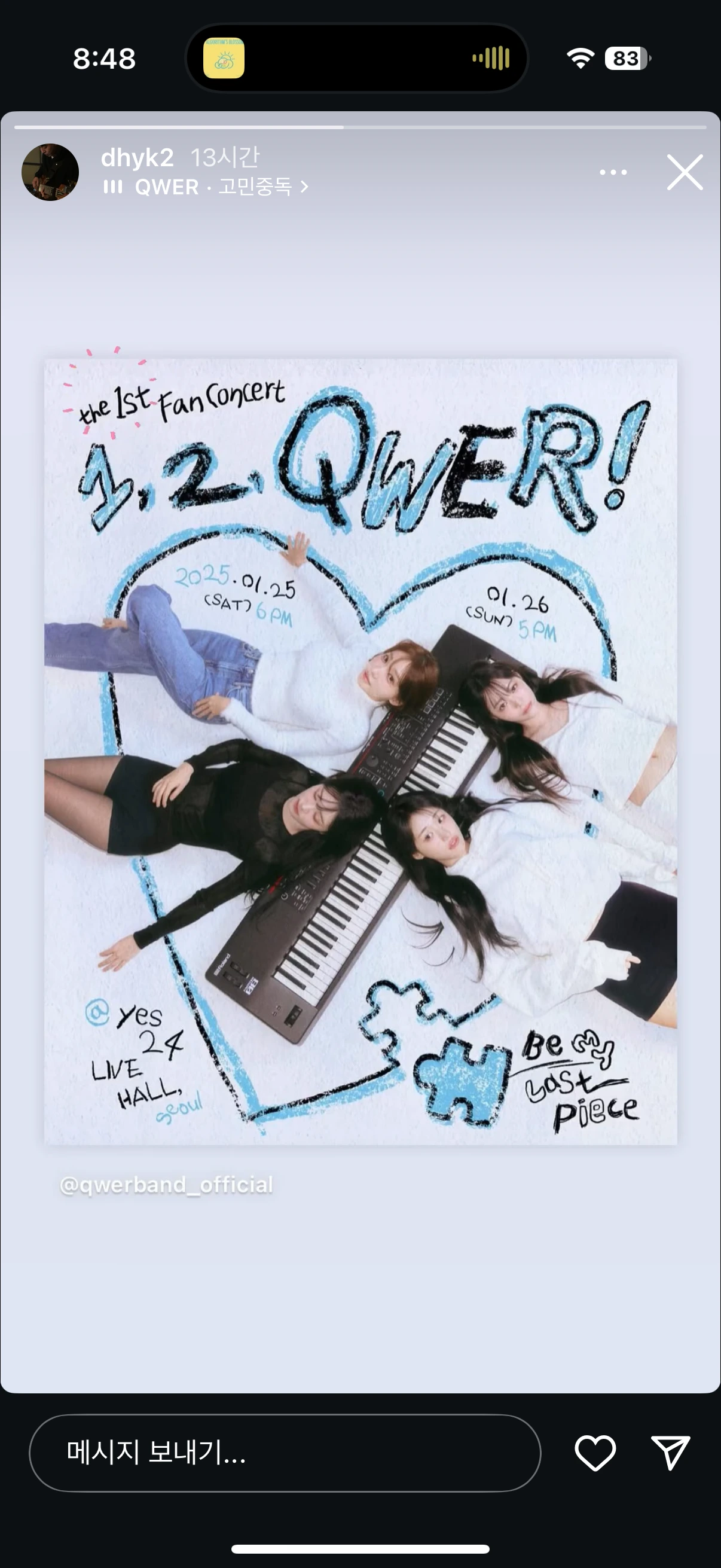 QWER의 음악 프로듀서, 바위게들의 ‘동동’, 이동혁 프로듀서는 자신의 인스타 스토리에 QWER의 팬 콘서트 포스터 사진을 올리며 “1st”를 강조해서 표시했다. 이 팬 콘서트는 말 그대로 앞으로 다가올 여러 번의 콘서트 중 이제 시작하는 첫 번째일 뿐이라는 뜻이다.