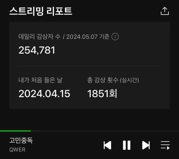 그래서 아쉬운 대로, 스밍을 열심히 돌렸다. 회사에 있을 때는 이어폰에 연결해 볼륨 1로 켜두고, 잘 때는 거실에 볼륨 1로 해두고, 중간에 멜론이 스밍임을 인식해서 일시정지가 되면 한 번씩 풀어주고. 그렇게 24시간 스밍을 돌리고, 퇴근 시간이 다가오면 사람들한테 스밍을 독려하는 게시글을 올리는 식으로 내가 팬으로서 할 수 있는 역할을 충실히 수행했다.