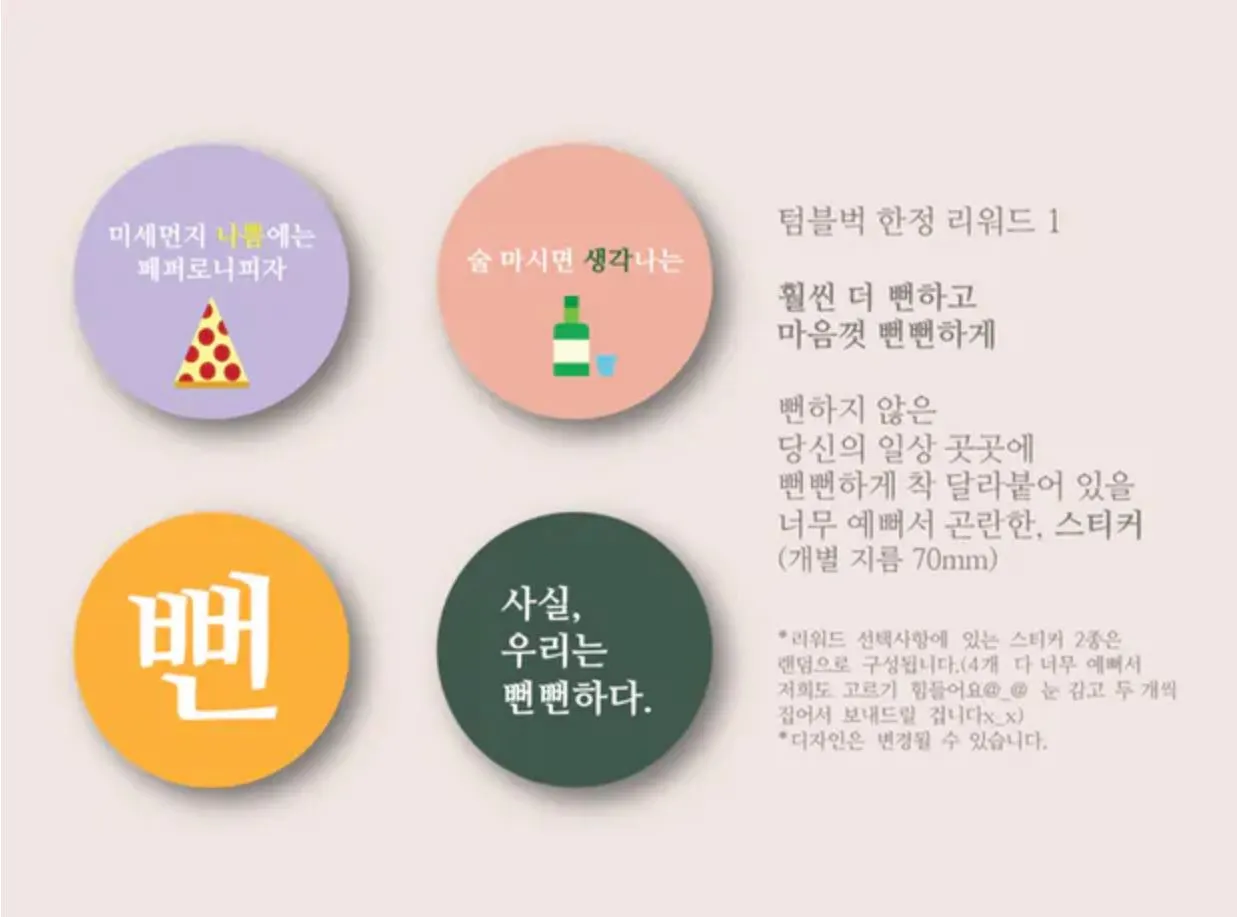텀블벅에서 <뻔>을 구매하는 후원자를 위한 책갈피와 스티커! 역시 작고 귀엽다