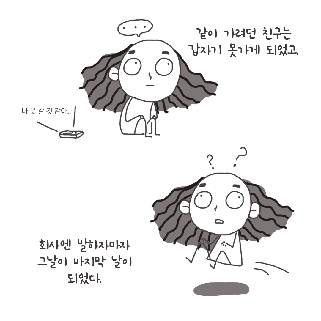 그러나 세상 날 떠밀기라도 하듯 회사는 말하자마자 쫓겨나는 심정같이 바로 나오게 됬고,