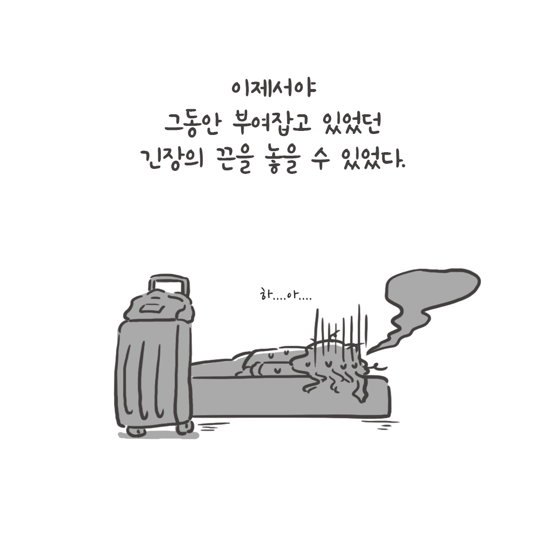 방에 오자마자 지쳐 쓰러지고 말았다.