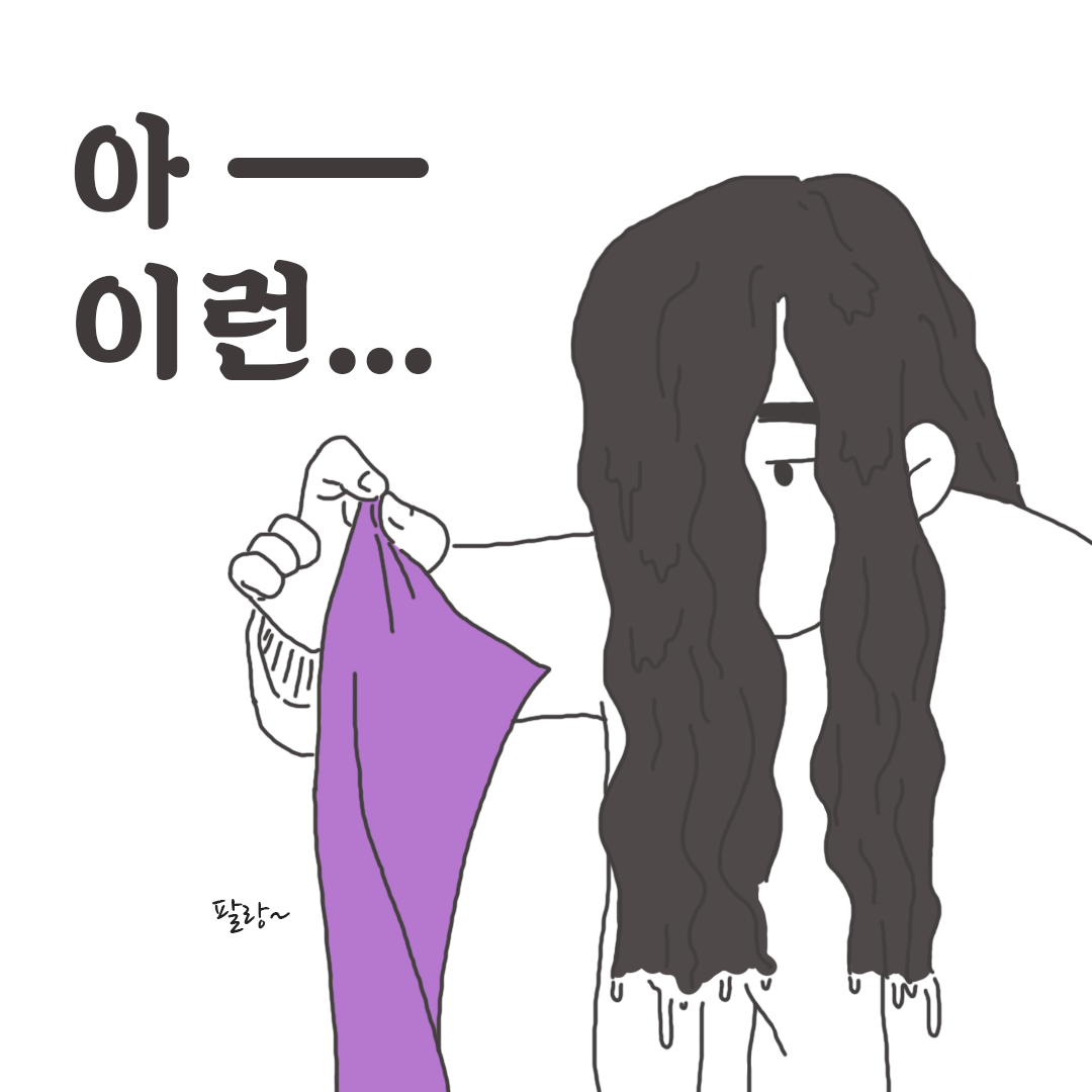 핸드드라이기가 보이기에 핸드드라이기로 말렸지.