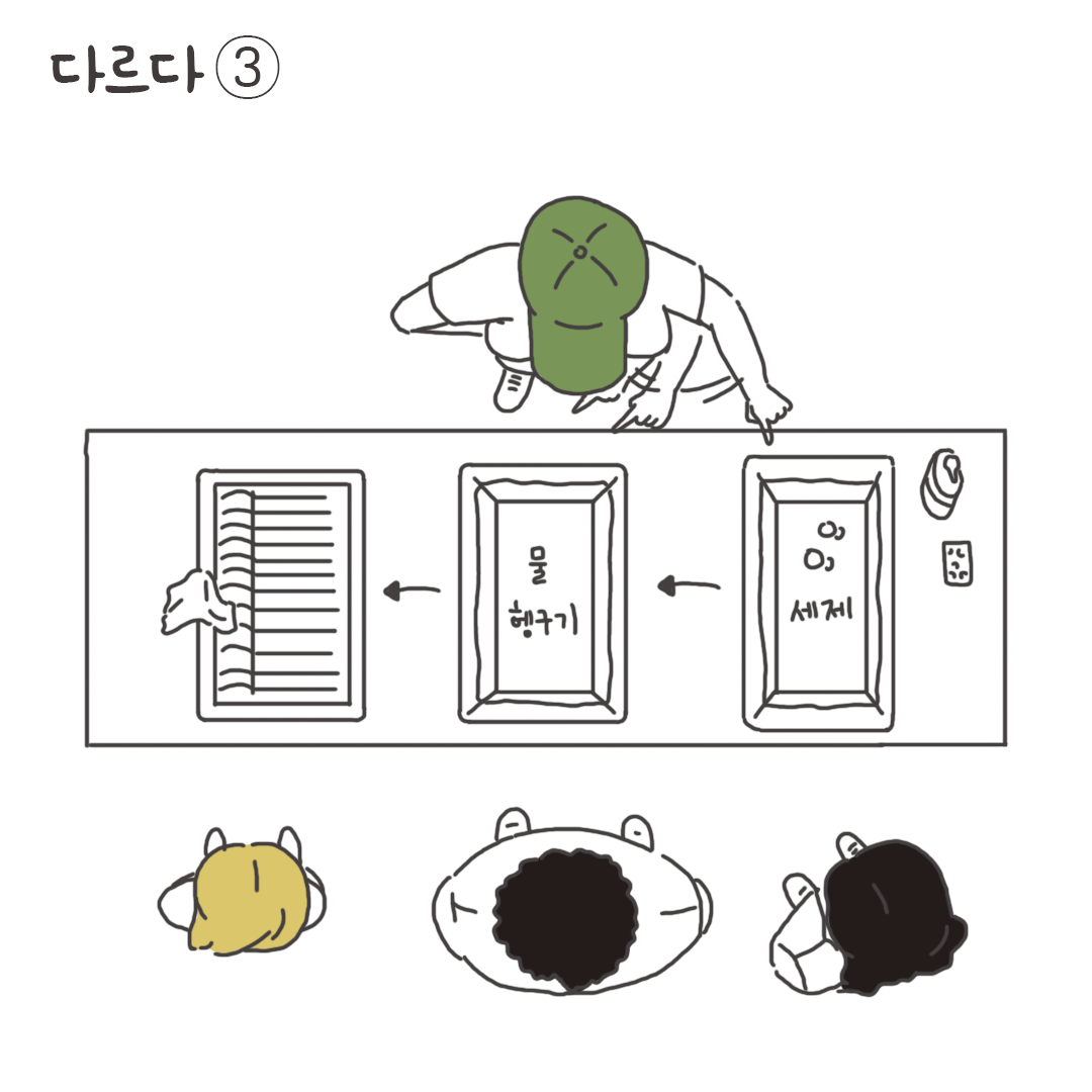 대야는 2개, 퐁퐁으로 닦고 그다음 물이 담겨있는 대야에서 그릇 씻고