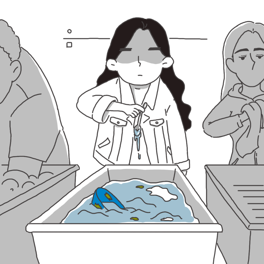 그것은 빨지도 못한 채 계속 쓰게 되었다.