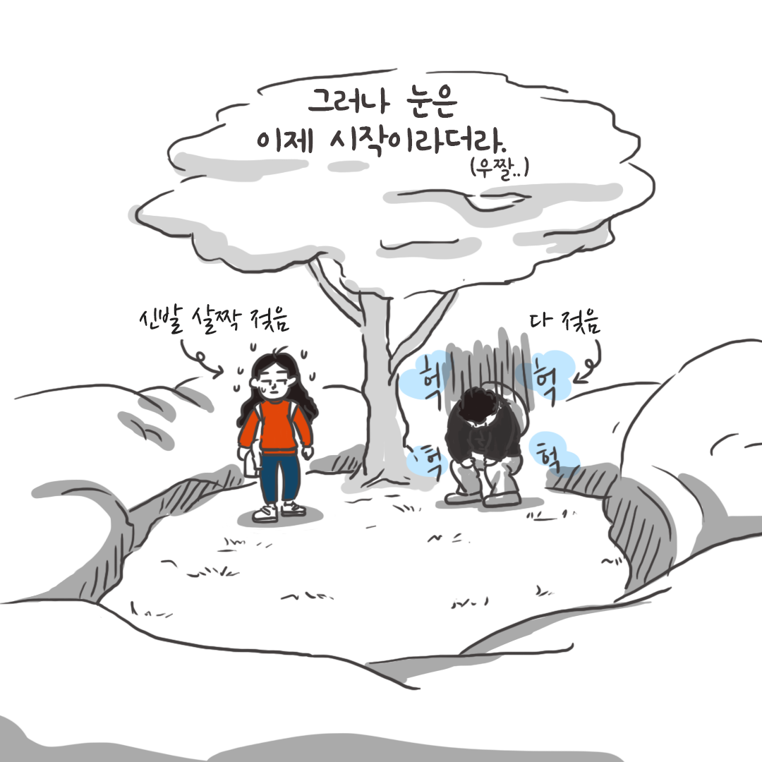 앞서 희생해주신(?) 분들의 발자국을 따라 밟는다.
