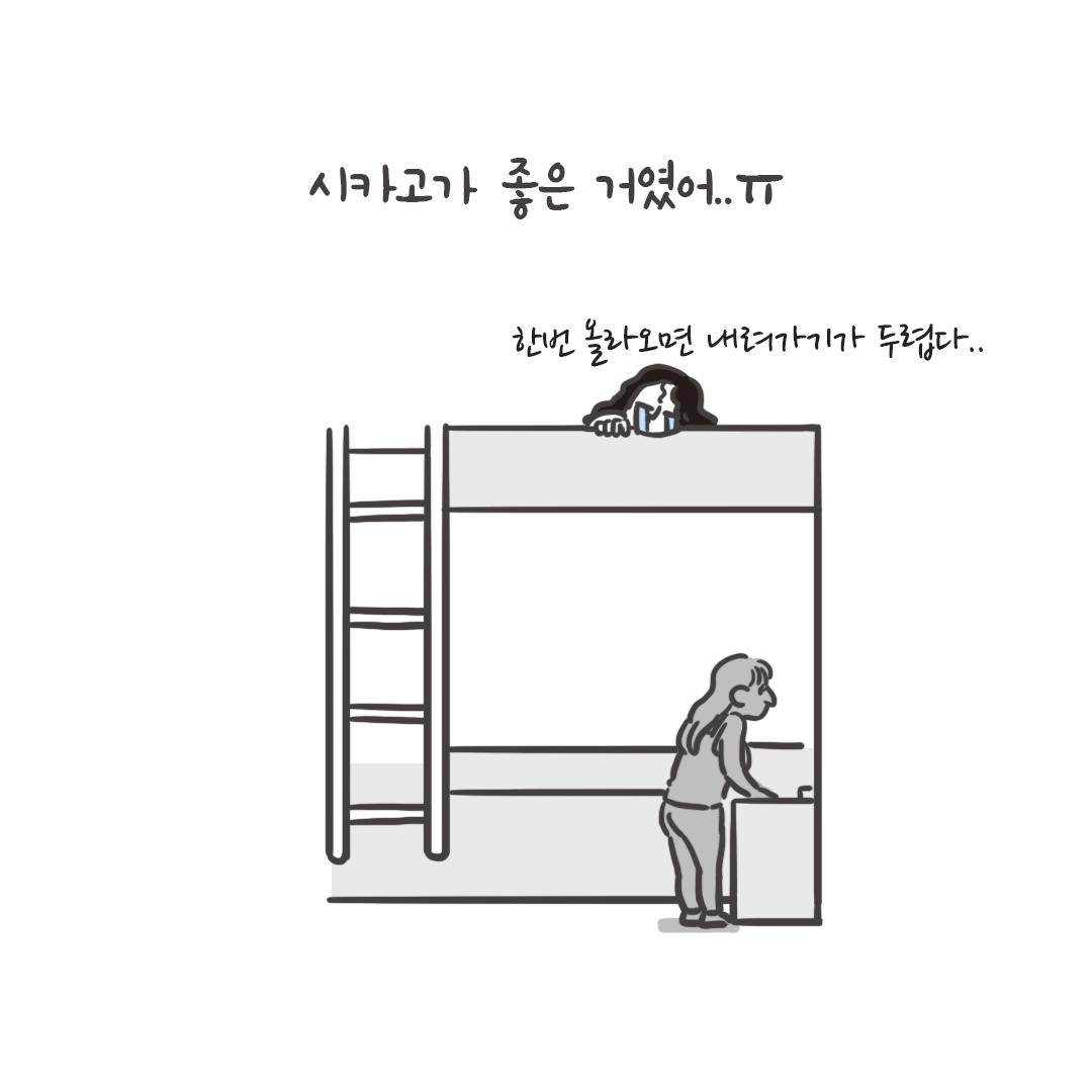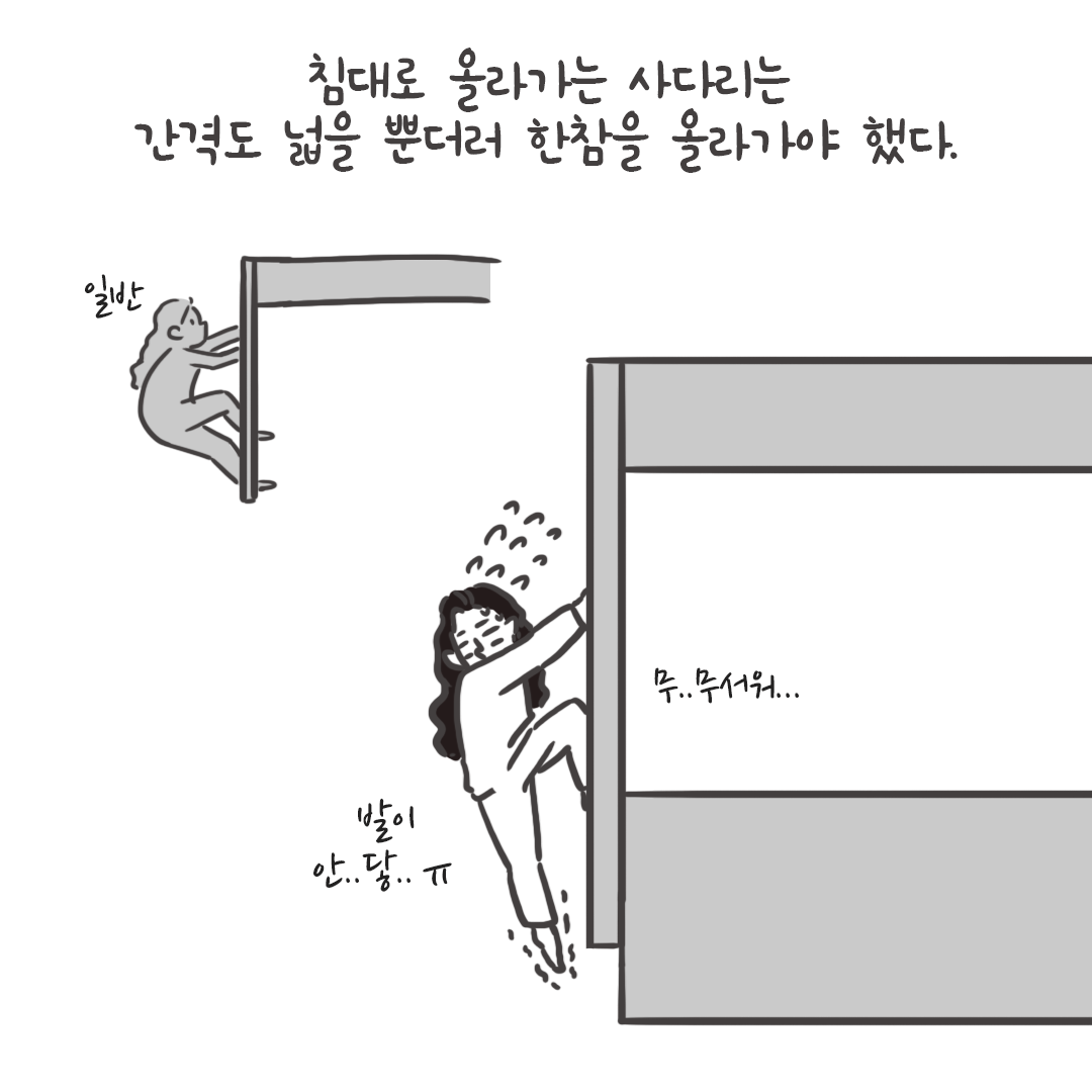 2층 침대가 무슨 천장에 달려있는 줄 알았다.