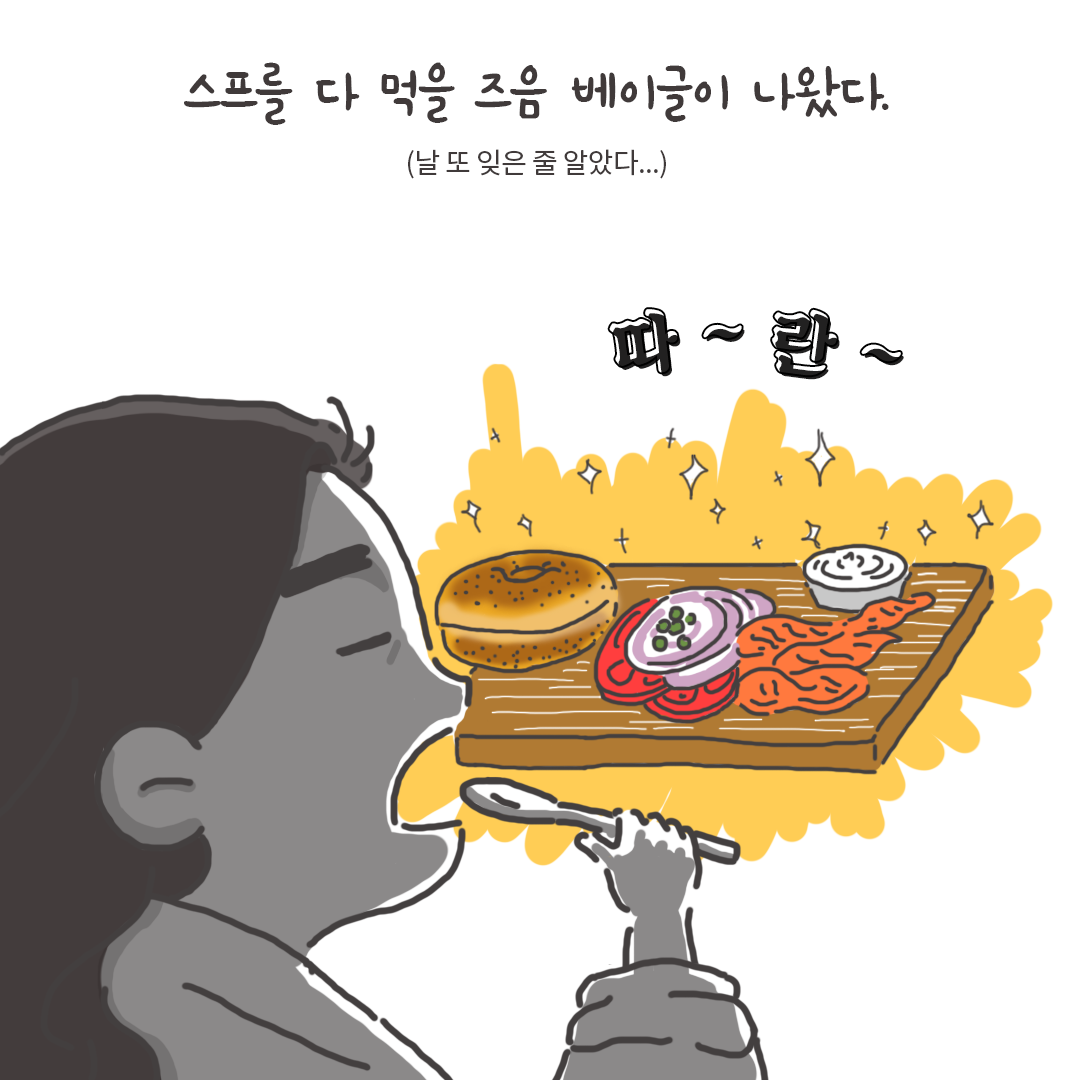 근데 너무 맛있었다. 사실 지금 생각해보면 연어베이글보다 난 이 스프가 더 맛있었다.