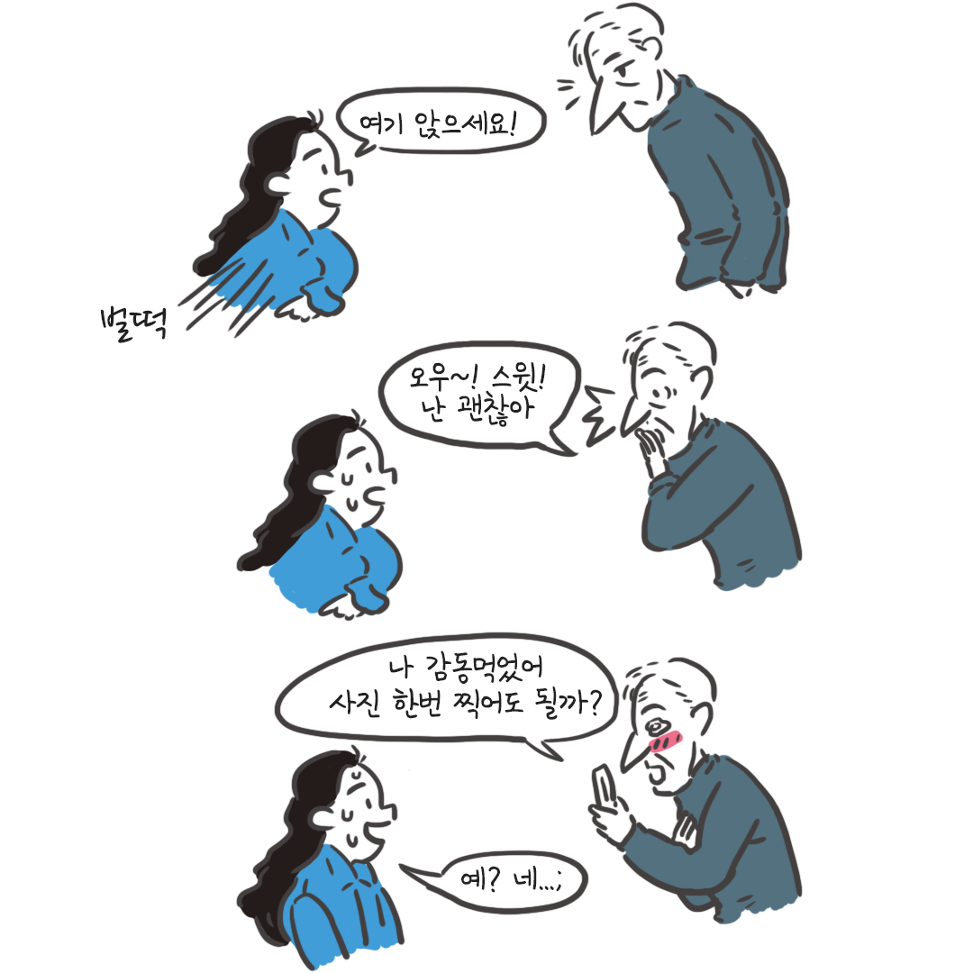 그는 자리는 됬노라며 사진을 찍어도 되겠냐고 하셨다.