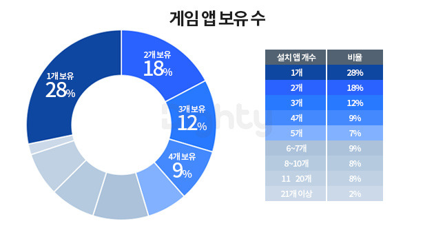 게임 이용자들은 몇 개의 게임 앱을 설치했을까요?