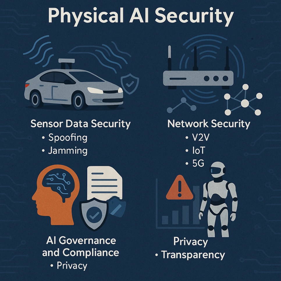 미국과 중국이 로보틱스와 자율주행 기술 경쟁을 벌이는 가운데, Physical AI의 등장은 보안 위험을 물리적 세계로 확장시키고 있습니다. 이는 세 가지 핵심적인 보안 과제를 제시합니다.