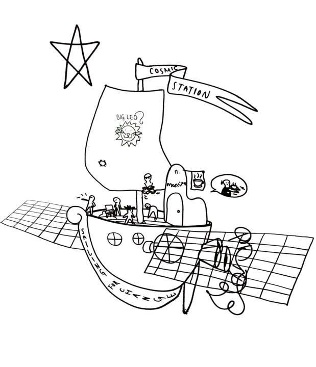 “우주선에 탄 우리는 지구인들과 대화를 시도한다.”