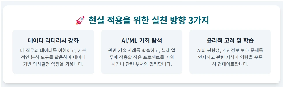 데이터와 인공지능 기술은 모든 직무 기능의 핵심 동력으로, 효율성 증대와 혁신적 가치 창출을 위한 필수적인 도구입니다.