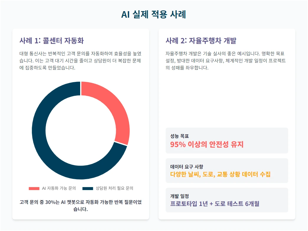 특정 작업을 자동화하는 데 집중하세요. 예를 들어, 콜센터의 전화 라우팅이나 이메일 응답과 같은 작업을 AI로 자동화할 수 있는지 검토해 보세요.