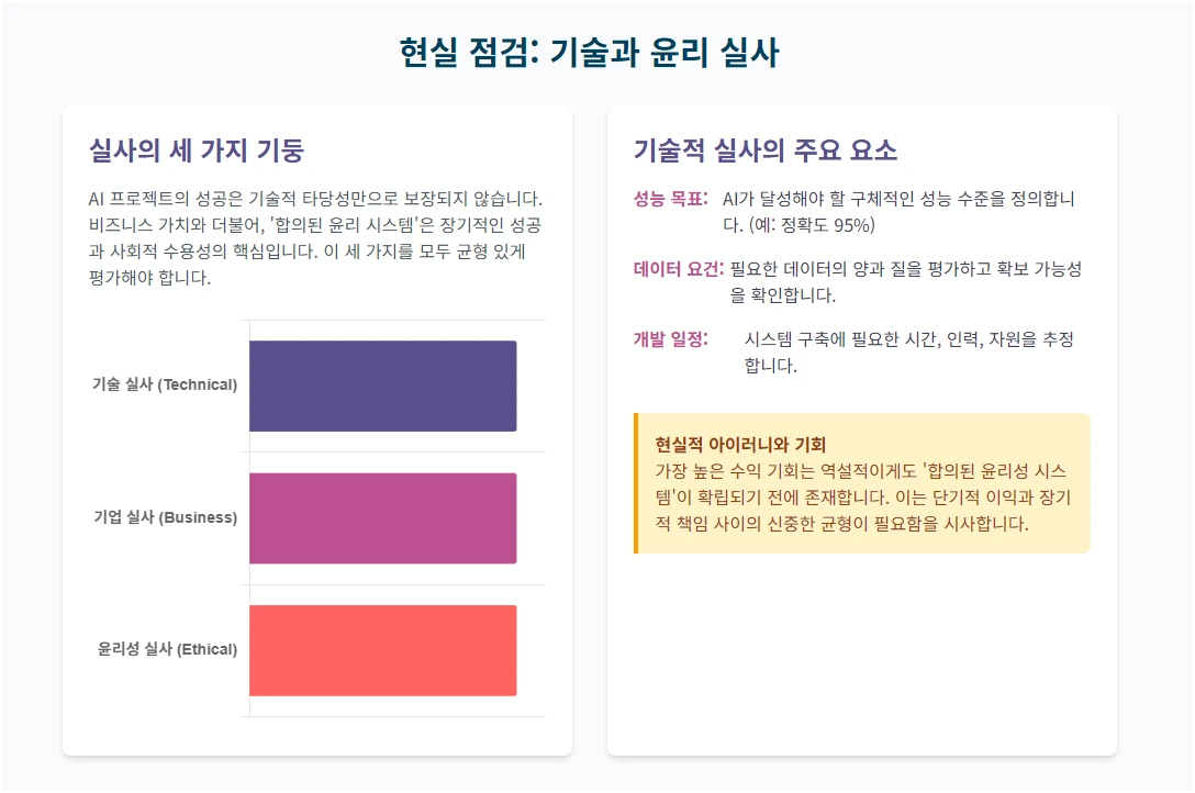 기술적 실사는 AI 프로젝트의 실행 가능성을 평가하는 과정으로, 다음의 주요 요소를 포함합니다: