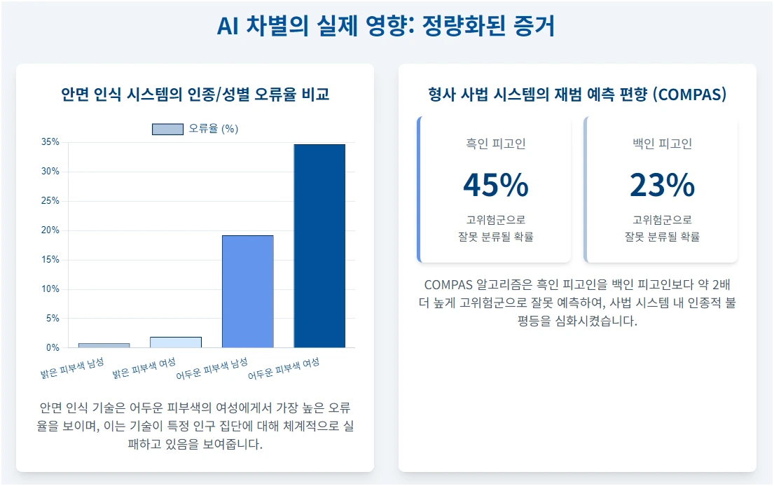 문제 발생: AI는 과거 데이터에서 남성 후보자들이 더 많이 채용된 경향을 학습하게 되었고, 그 결과 여성 후보자에게 불리한 평가를 내리게 되었습니다. 이로 인해 여성 지원자들이 채용될 기회를 잃게 되었고, 이는 명백한 차별로 이어졌습니다.