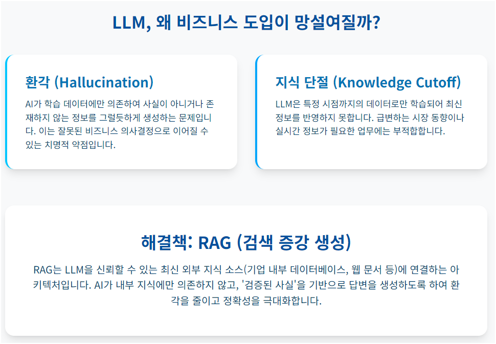 정보 제공 방식: LLM이 추론하는 데 필요한 정보를 질문과 함께 프롬프트에 직접 입력합니다. 이 방법은 LLM을 재학습시키거나 복잡한 백엔드 작업을 거칠 필요 없이, 즉각적으로 새로운 정보를 활용하게 만듭니다.