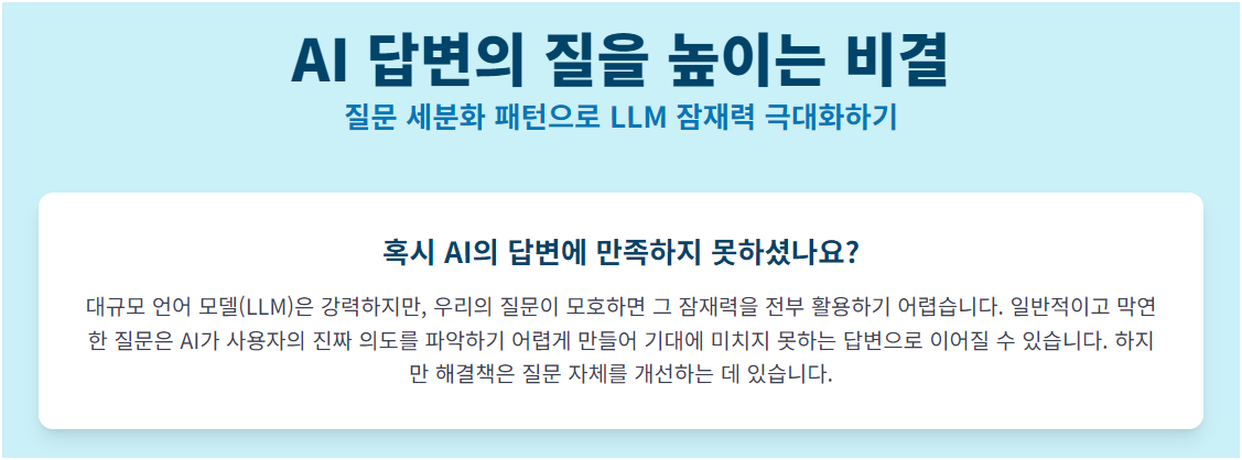 정보의 질 향상: 구체적이고 잘 구성된 질문은 더 유용하고 관련성 높은 정보를 이끌어냅니다. 이는 의사결정에 필요한 데이터의 품질을 높입니다.