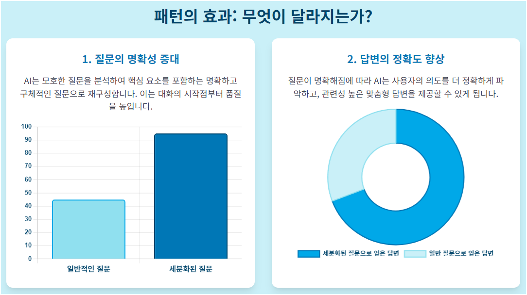 명확성 향상: 개선된 질문은 의사결정 과정에서 필요한 정보를 더 명확하게 정의합니다. 이는 혼란을 줄이고, 더 나은 이해를 돕습니다.