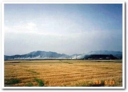 하얀 연기는 보릿대를 태우는 중이다. 그래야, 모내기를 할 수 있으니...