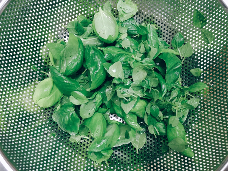 바질의 물기가 마르는 동안