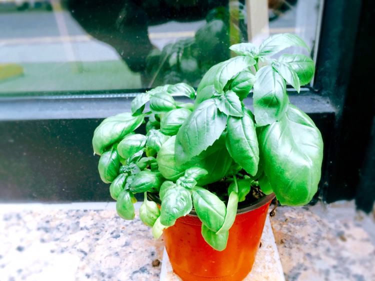 작은 바질 화분이 있다.