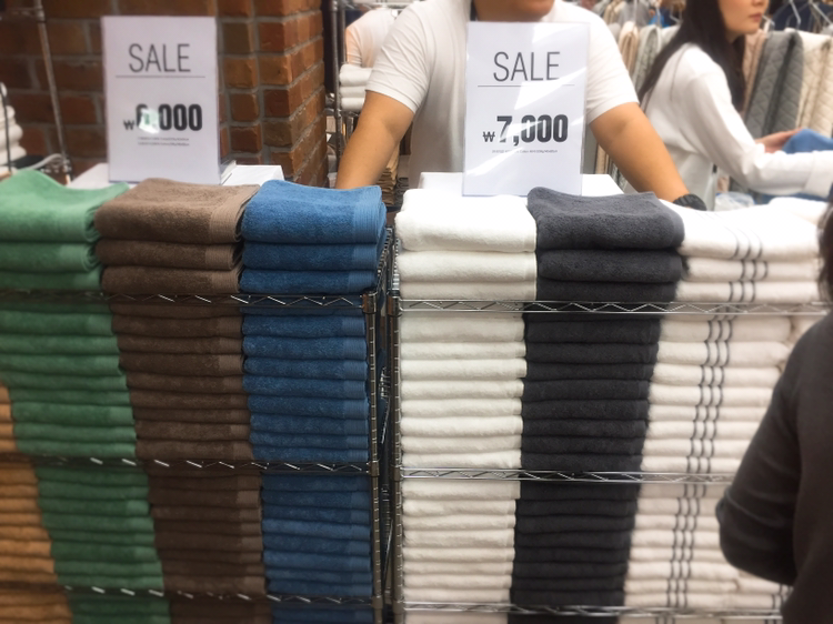 의류 가방 수건 등 접시 등 다양한 잡화들이 즐비했다.