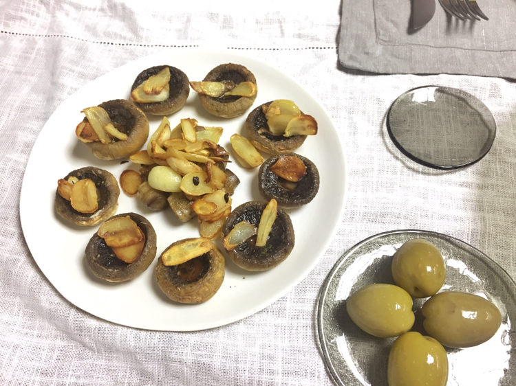 양송이를 꺼내 올리브 오일을 듬뿍 뿌려 오븐에 넣었다.