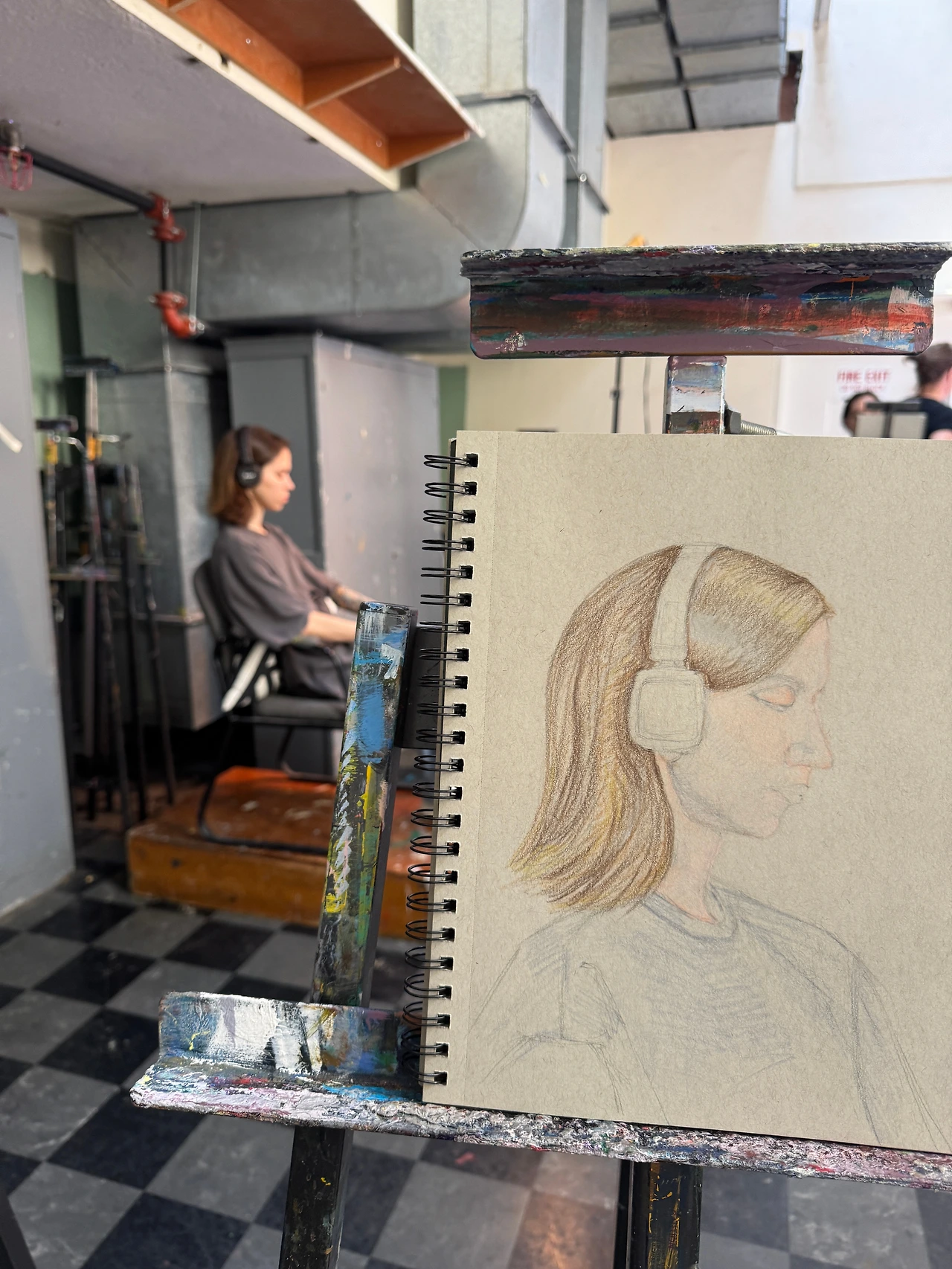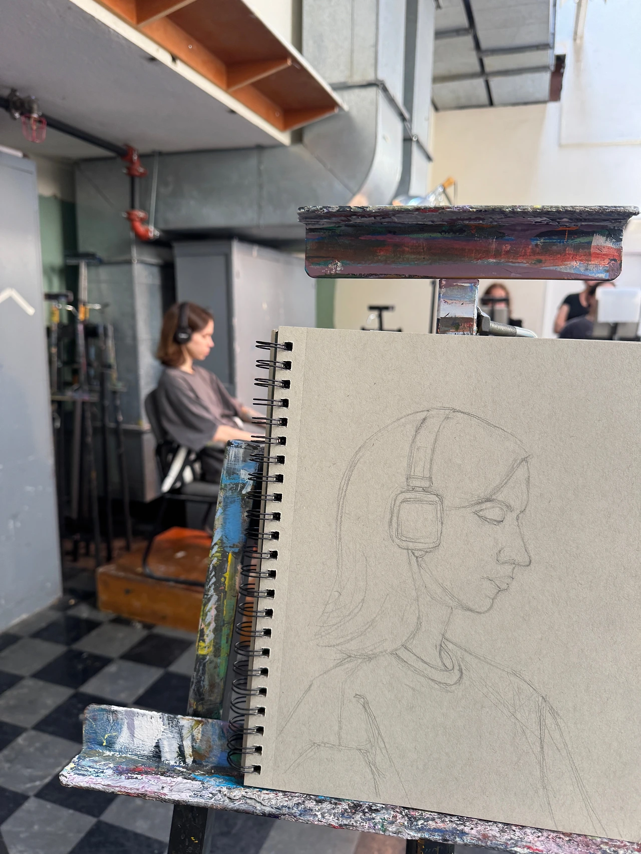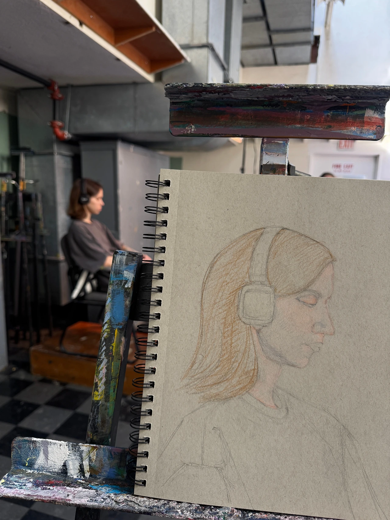 오늘 모델은 큼지막한 헤드폰을 쓴 젊은 여자분이셨다. ‘얏호! 귀가 안 보인다!!’ 눈, 코, 입 모두 미묘한 그 한 끗 차로 실제처럼 그려내기 쉽지 않지만 유독 ‘귀’를 그리는 것은 어렵게 느껴진다. ‘뫼비우스의 띠’ 같은 느낌이랄까. 바깥면이 안으로 말려 들어가는 것 같으면서도 또 안쪽에서 다시 바깥으로 빠지고, 선이 갑자기 면이 되고, 서로 복잡하게 빚어져 있어서 나에게는 ‘가장 공부하기 싫은 과목’처럼 느껴지는 부분이다. 그런 ‘귀’가 오늘 없다니, 오늘 아무래도 ‘대작’이 나오려나보다.