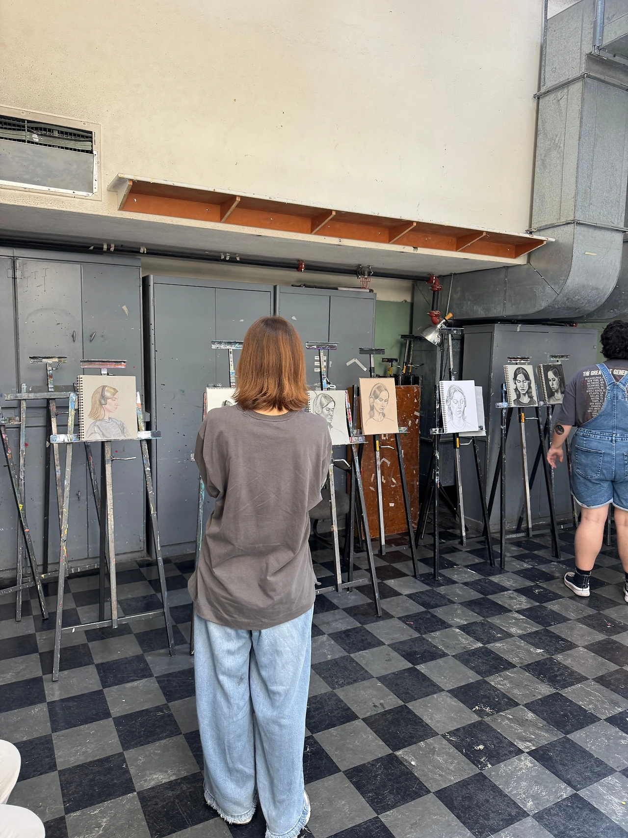 복도에서 이리 찍은 걸 보니 이때도 꽤나 고민하다가 ‘사진 찍을래?‘ 했나보군… /. 수업을 인연으로, 이후에도 종종 만나 갤러리에서 함께 그림 그렸던 Susan(중앙의 체크셔츠)
