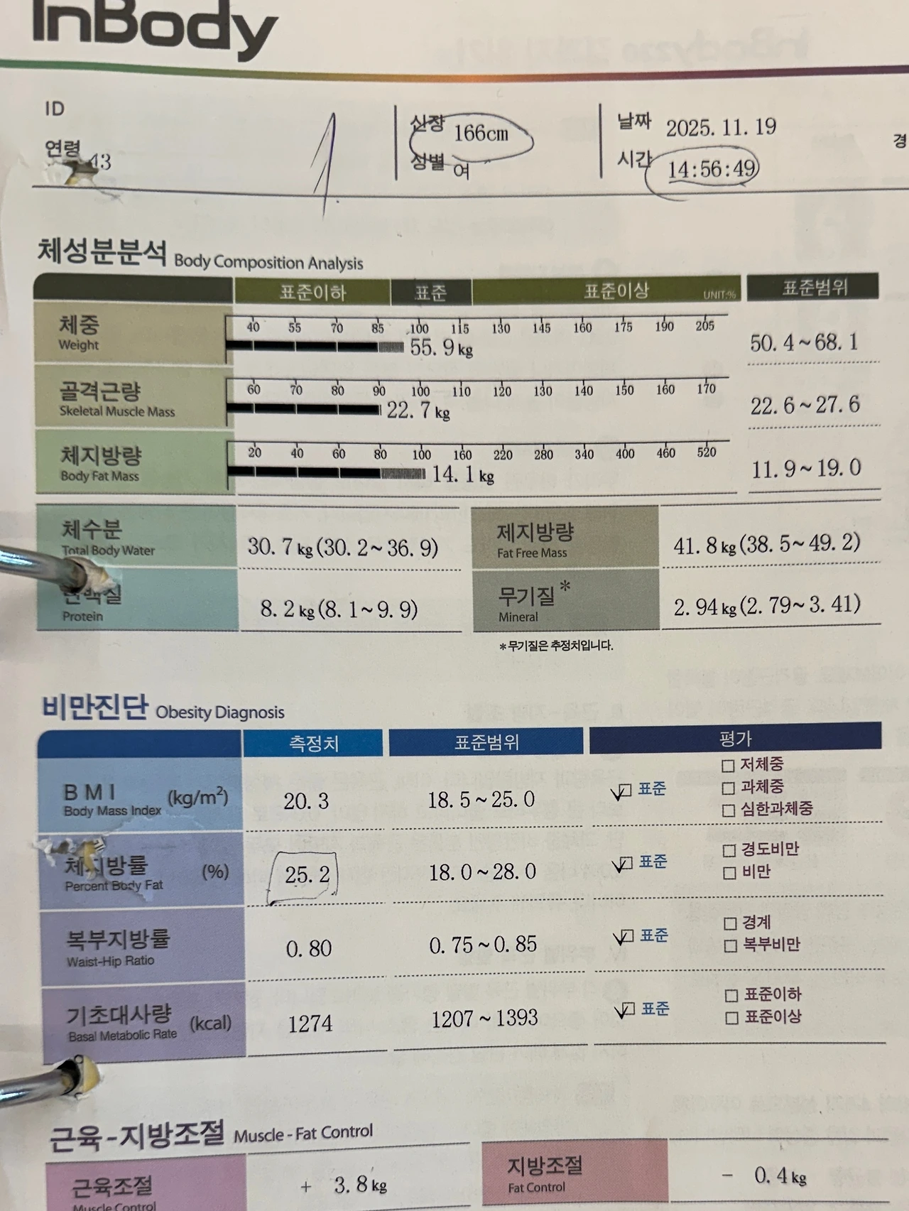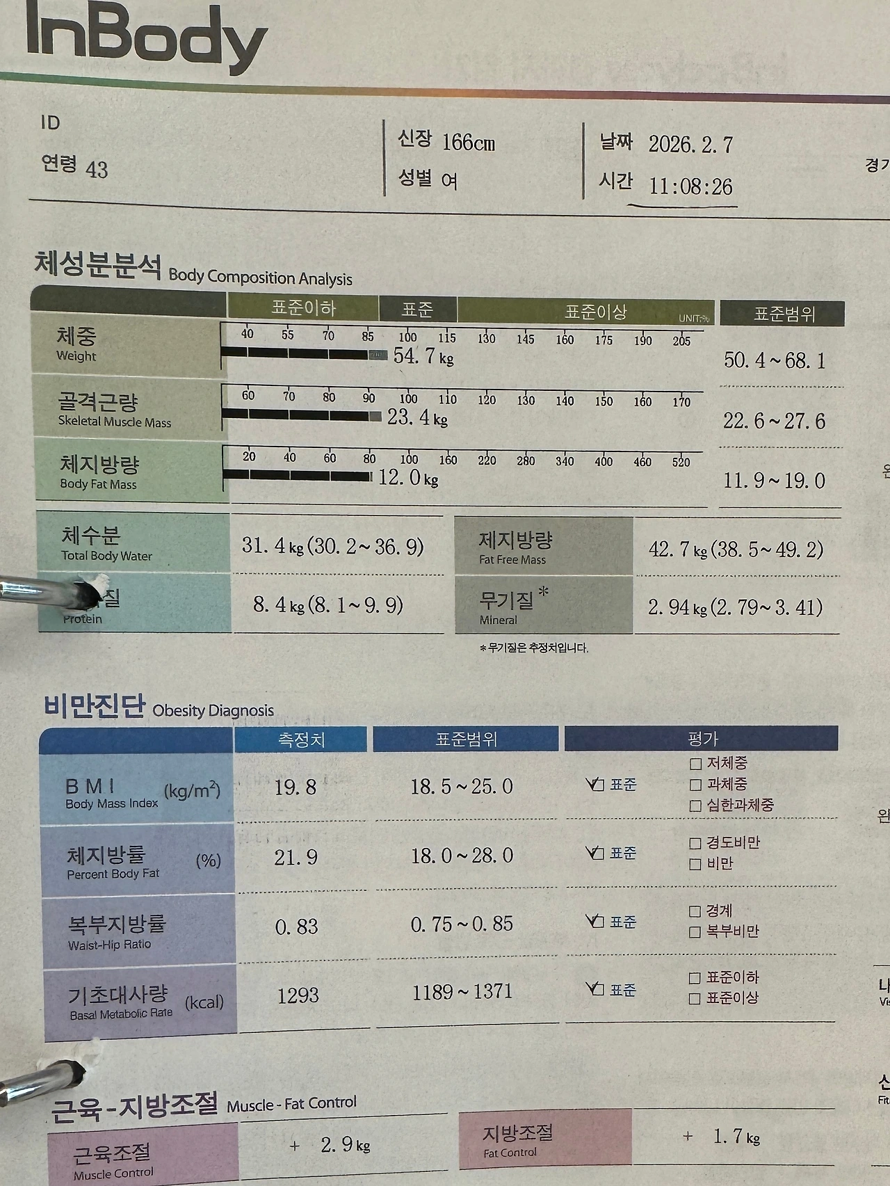 다이어터의 성적표 같은 인바디 결과지. 이게 뭐라고 잴 때마다 긴장이 되는데애!!!