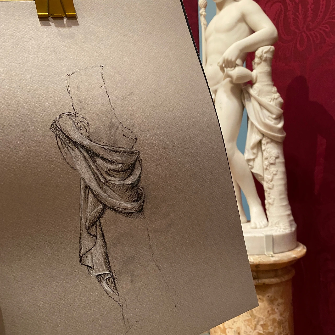 ‘아, 맞다. 나도 미술 좋아했었지.’ 까맣게 잊고 있었던 오래전 나의 모습이 떠올랐다. ‘이걸 신청해? 말아? 아직 영어로 미술수업을 들을 자신은 없는데…’ 이제 막 미국에 온 지 4개월 정도 되었을 때였다. 비루한 영어 실력은 물론, 아직 많은 것들이 낯설었다. 오랜 고민 끝에 ‘밑져야 본전이겠지’ 하는 마음으로 수업을 등록했다. 4일간 하루 4시간 동안 나는 아주 오랜만에 오롯이 집중하며 Gallery에서 그림을 그렸다. 눈으로 조각들의 형태를 읽고 이해한 후, 실로 오랜만에 도화지를 채워나갔다. 오래전 소묘를 처음 배웠던 때의 감각과 기억이 천천히 살아났다. 그리고 그 수업을 시작으로 MFA의 성실한 학생이 되어 버렸다.