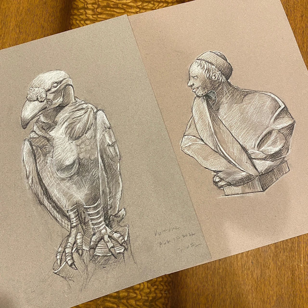 2년 반 동안 Drawing in the Galleries, Drawing Foundation, City Painting with Watercolors, Pen and Ink 등의 수업을 들었다. 여러 수업을 들어보니 Painting 수업보다 한 가지 재료로 풍부하게 사물을 그려내는 Charcoal Drawing이나 Ink Drawing 수업들이 더 재미있었다. 이번 학기에 어떤 수업을 들을까 고민하는데 지난번부터 고민했던 Portrait 수업에 자꾸 눈이 갔다. 그동안 다른 수업들을 통해 Gallery에 있는 많은 조각상들을 그렸다. 매번 미끈한 조각상들을 약간 더 살집 있는 통통이들로 그려내긴 했지만, 전체적인 형태들을 이해하고 스케치북으로 옮겨오는 것은 그래도 어찌어찌할만했다.