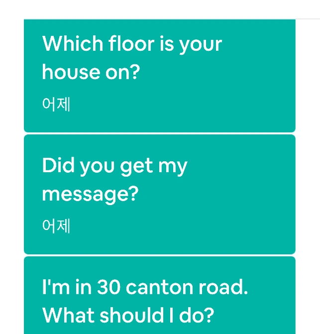 "address: 30 Canton Rd" 이라고 주소만 왔으며 (에어비앤비에 공식 등록된 주소였다)누가 날 안내해 주냐고 물으니 "I'm waiting for your coming" 이라고 했다. 그게 마지막 문자였다.