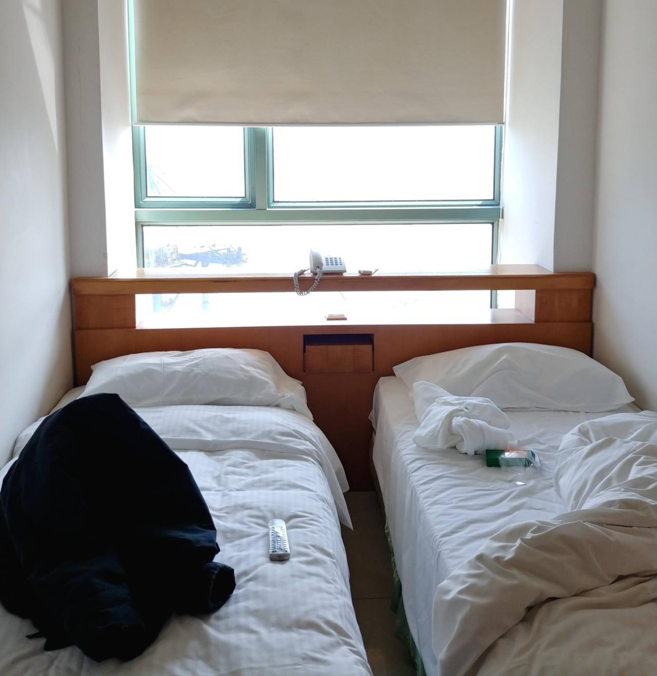 홍콩 입국 첫날. 저녁시간에 도착했는데 공항에 코로나 검사 부스를 만들어 현장에서 PCR검사를 했다. 음식 알러지가 있는지 간단히 묻고 샌드위치와 음료수를 나눠주고 검사 결과 나올때까지 한 사람씩 의자에 앉아 홍콩 뉴스를 보며 대기하게 했다. 샌드위치는 참 허접했다...남자들은 매우 배고팠을거 같다. 대기를 하고, 버스로 또 어디로 이동을 했다가 거기서 또 기다리게 하고, 어느 유령 나올 것 같이 으스스한 호텔로 이동했다. (외벽이 공사중인듯 유리창없이 비닐로 싸여있었다) 한 명이 겨우 들어가 설 수 있는 샤워실엔 비누조차 없었다. 프론트에 전화하니 원래 비누 없단다. 청소도 전혀 안 됐고, 베개는 사각사각 소리가 나서 베갯속을 보니 쿠션이 아니라 비닐 뭉치같은 것들을 넣었다. 내 참 세상에 이런 베개 첨 본다...아주 싸구려 호텔에 내팽개쳐진 기분이 들었다.