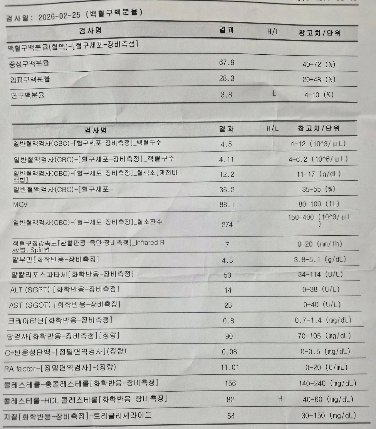 1시간 이후, 피검사 결과가 나왔고, 진료실로 들어가 유 선생님을 만났다.