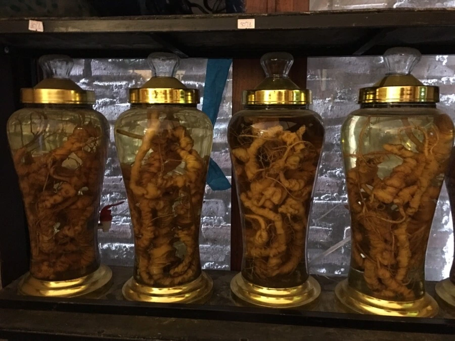우리가 잠시 대기했던 호텔 식당에 담궈져 있던 인삼주 비스무리하게 생긴 술..