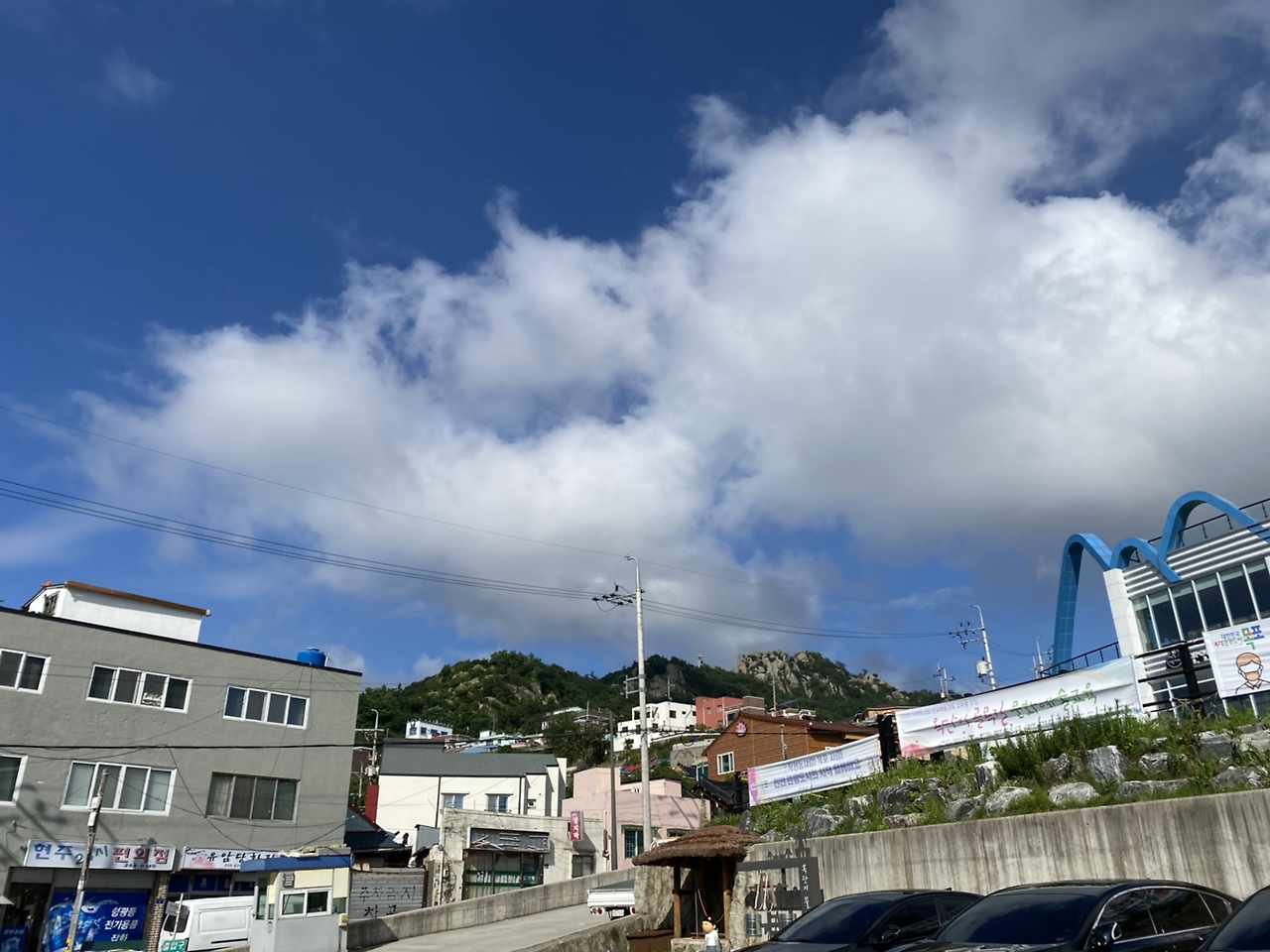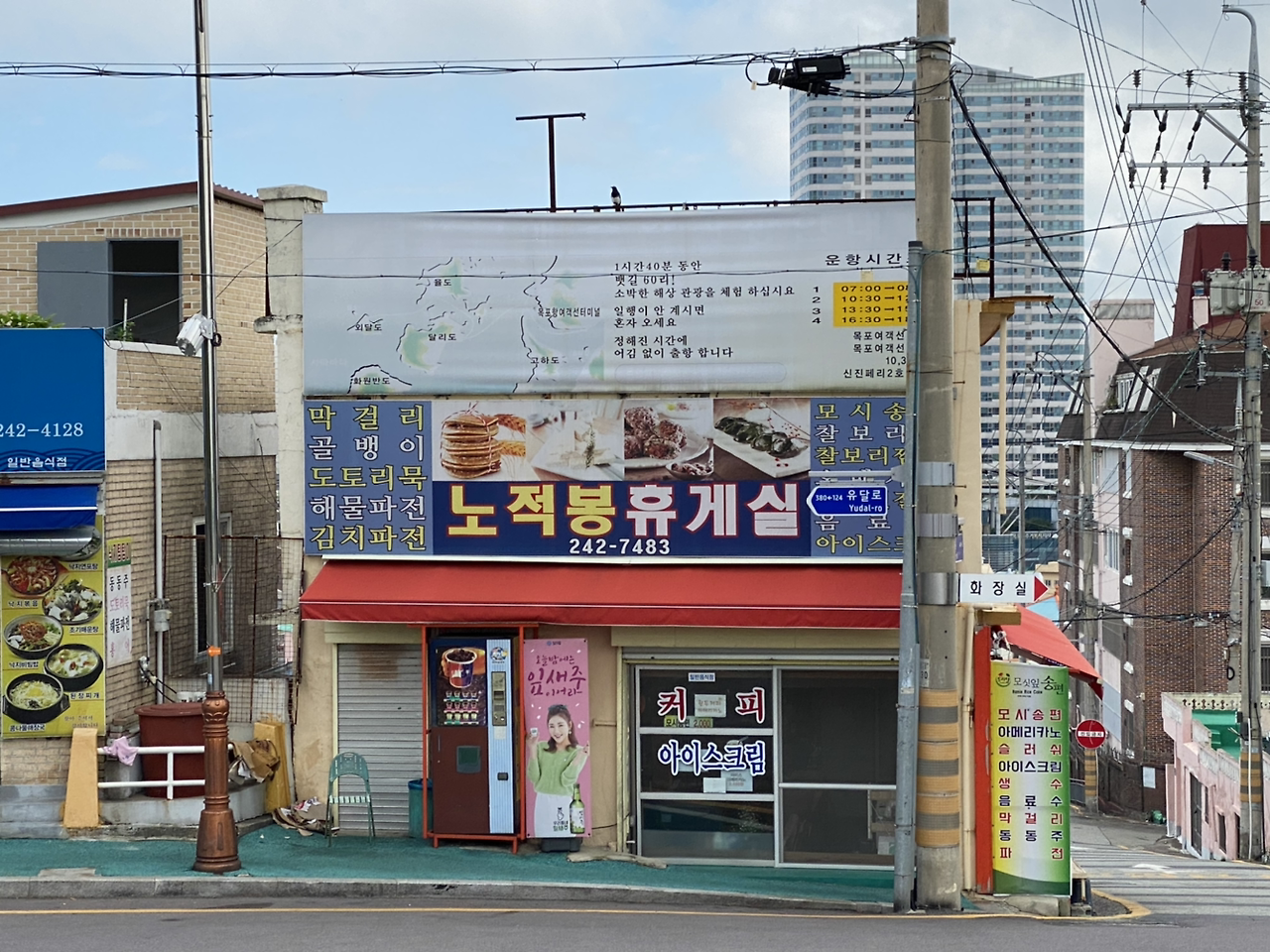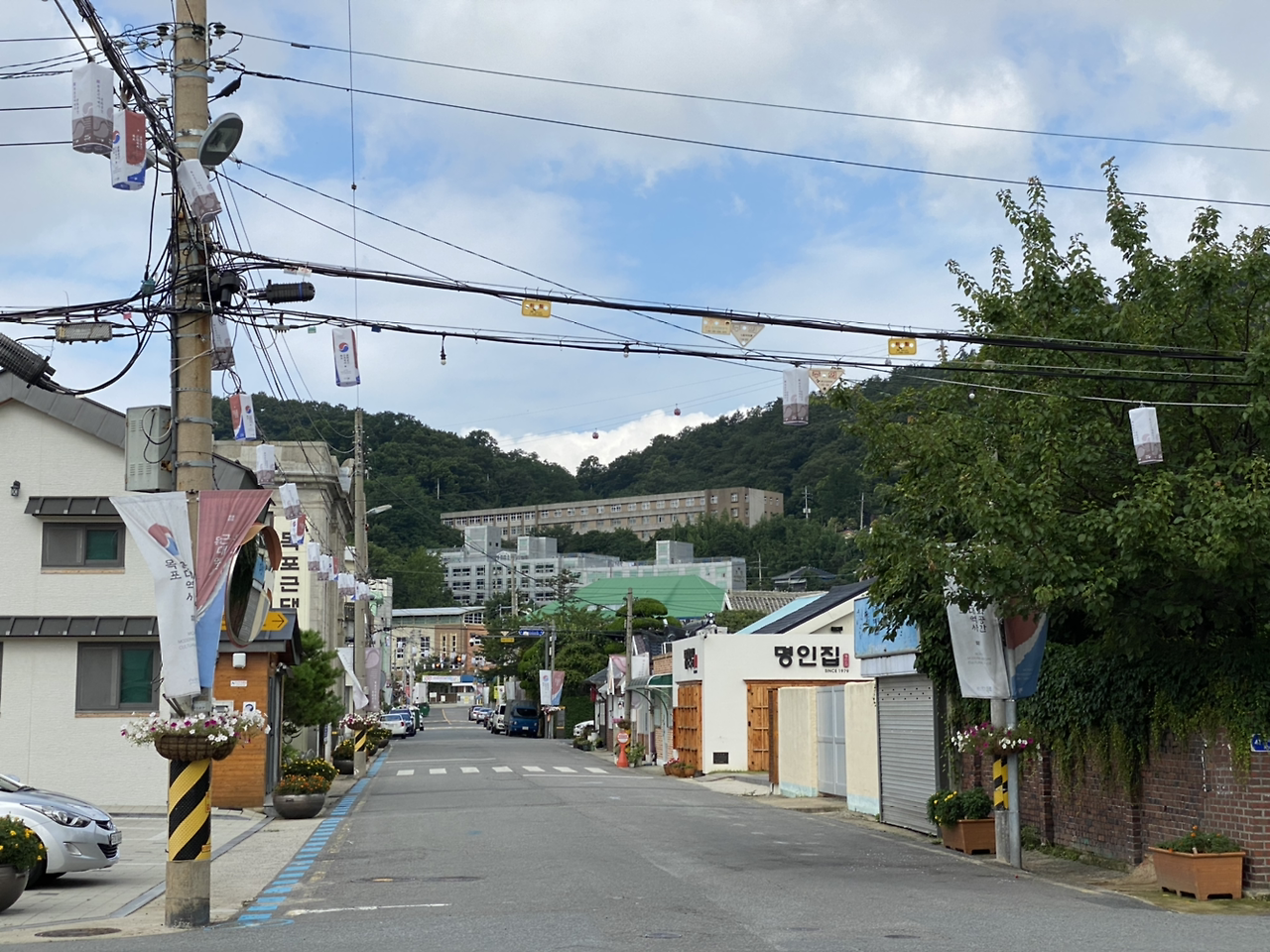 춘화당에서 조금 떨어진 공영주차장에 차를 세워 놨는데 주차장 옆 식당에 이런 현수막이 걸려 있었다.