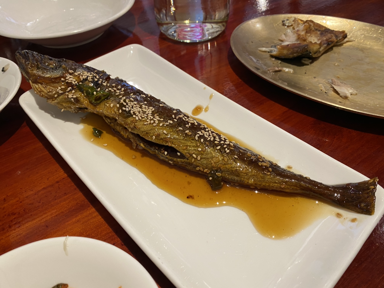 밑반찬 깔린 이후에 이게 떡 나오길래, 이게 코다리인가 보다 하고 먹었는데 맛이 어째 고등어 같더니...해서 물어보니 이건 고등어가 맞다고 ㅎㅎ (근데 고등어구이가 밑반찬으로 나오는 클라스 보소...ㄷㄷㄷ)