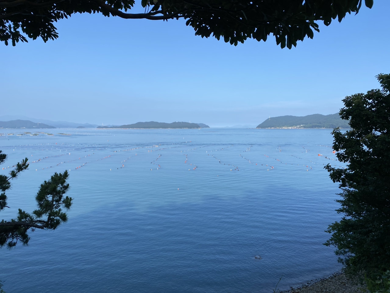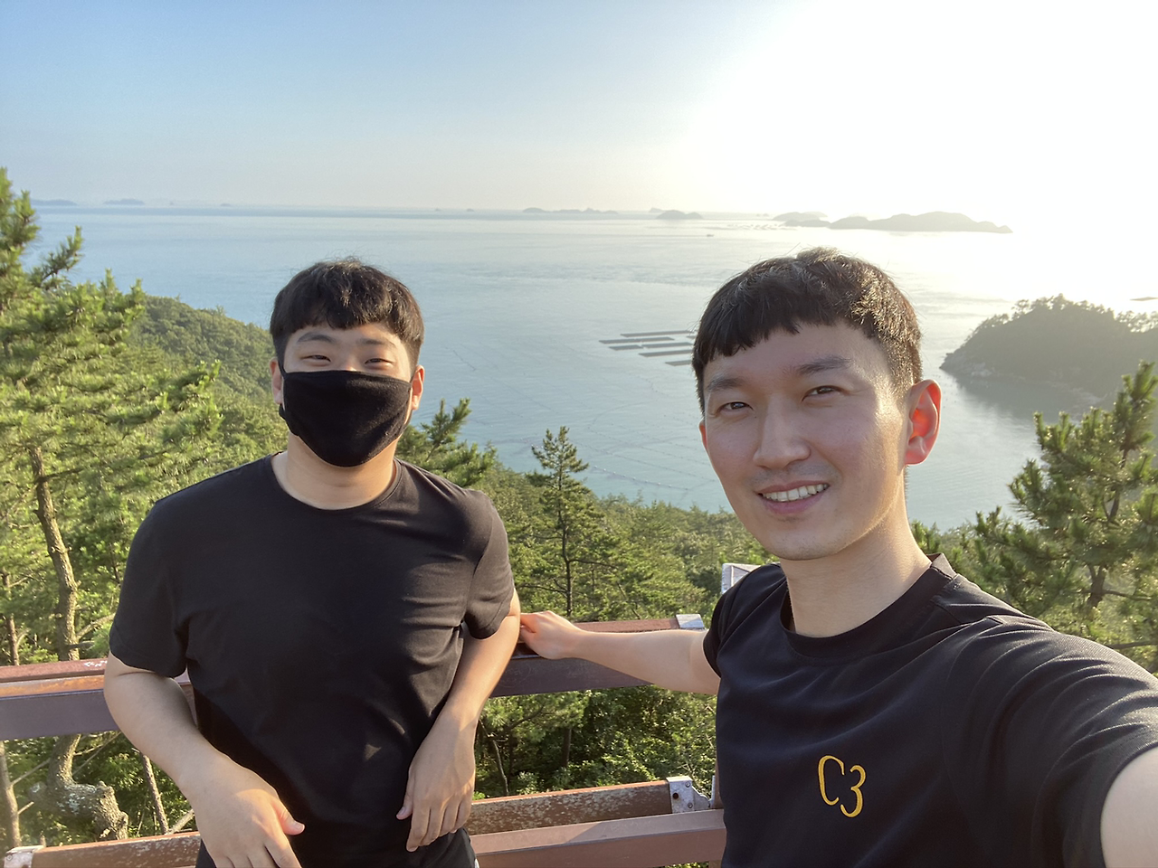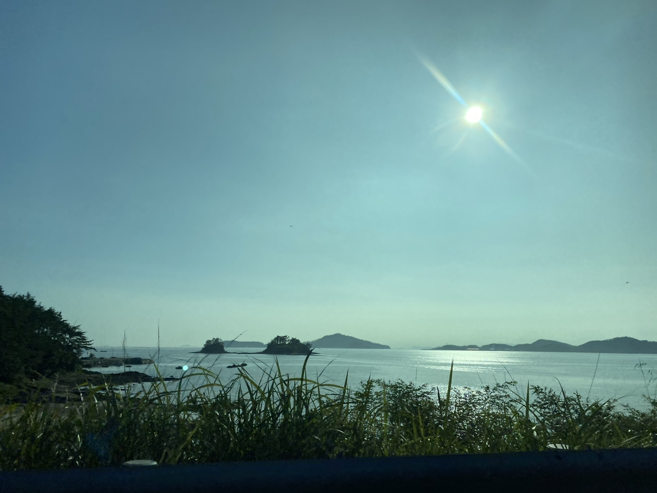 그래도 구름 한 점 없는 하늘과 바다의 경계를 나누는 건 띄엄띄엄 보이는 섬들 뿐이었다. 울창한 나무 숲 사이로 보이는 경치가 여름 산길의 시원한 활력제가 되었다.