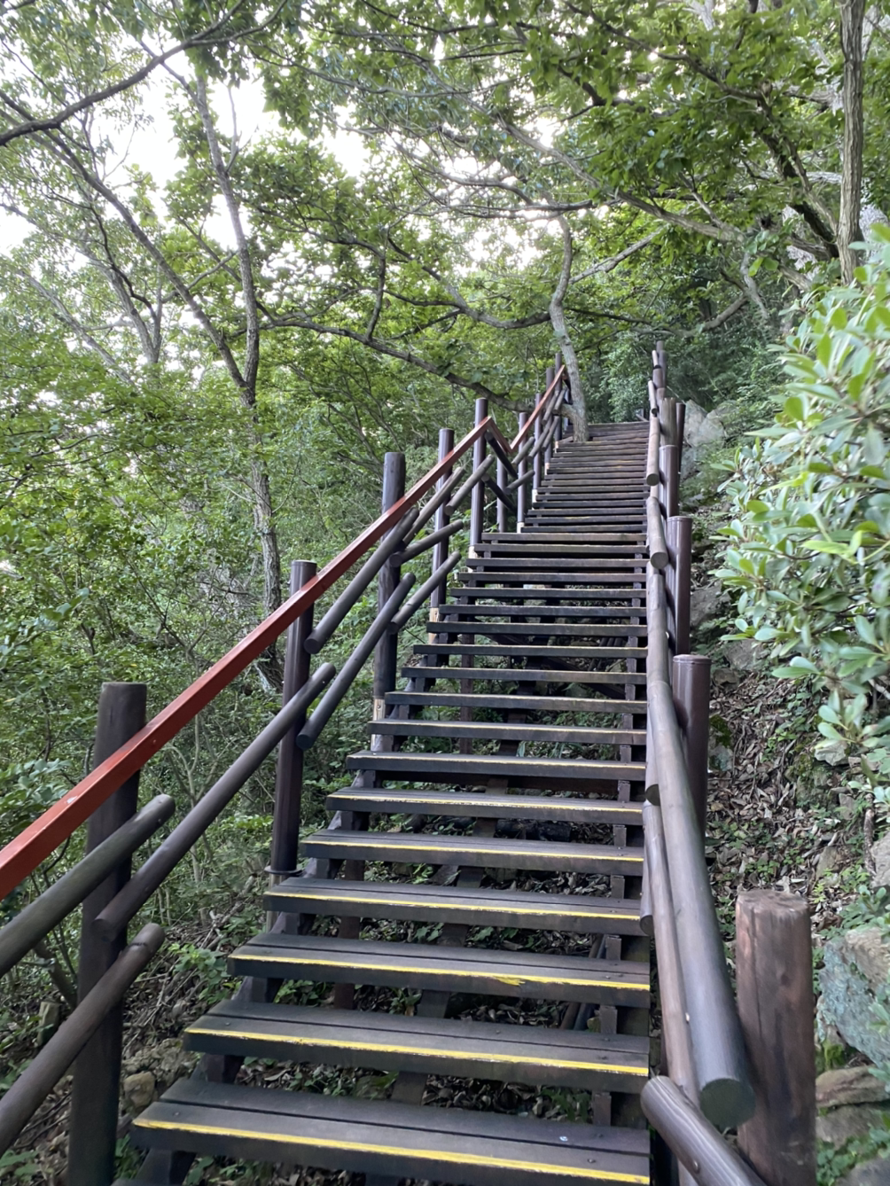 땅끝탑까지는 이런 계단 길을 오르내리 길을 30분 정도 해야 했다. 다행히 계속되는 오르막길이 아니었다. 평지와 같은 고도에 위치해 있지만 땅끝지점까지는 평지가 아니라 바위섬을 지나가야 하다 보니 중간중간 이렇게 경사 구간을 지나야 했다.