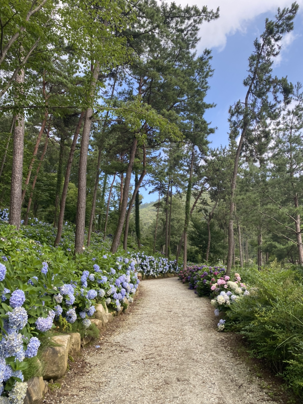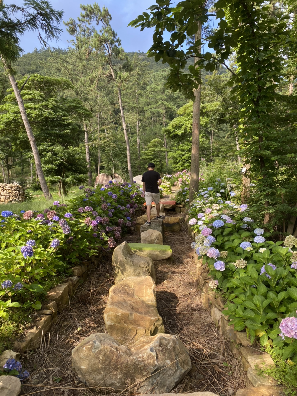 자갈길에서 왼쪽의 수국 꽃덤불로는 셋길이 하나 나 있었는데 꽃들에 둘러 쌓여 사진 찍기에 안성맞춤이었다. 이런 아기자기하고 예쁜 공간을 여자친구와 왔어야 하는데ㅠ 아쉽...ㅎㅎㅎ (아마 친구도 같은 생각을 하고 있지 않았을까 싶다...)