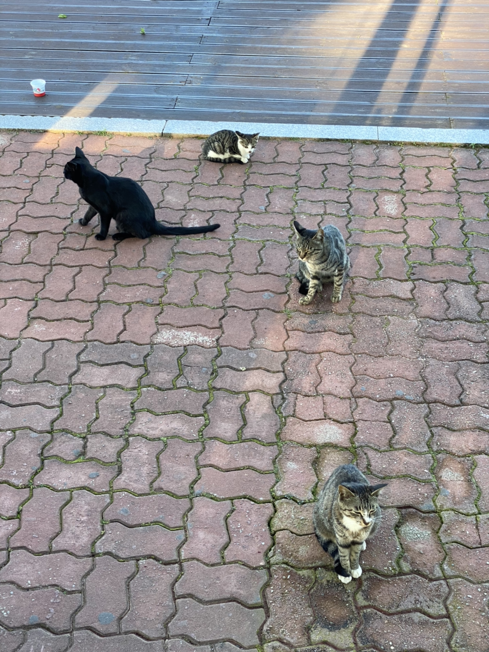 탑승장 주변에는 왠일인지 길냥이로 보이는 고양이들이 엄청 많았다. 그루밍을 잘 하는 동물이어서 그런지 떼깔이 말쑥하다.