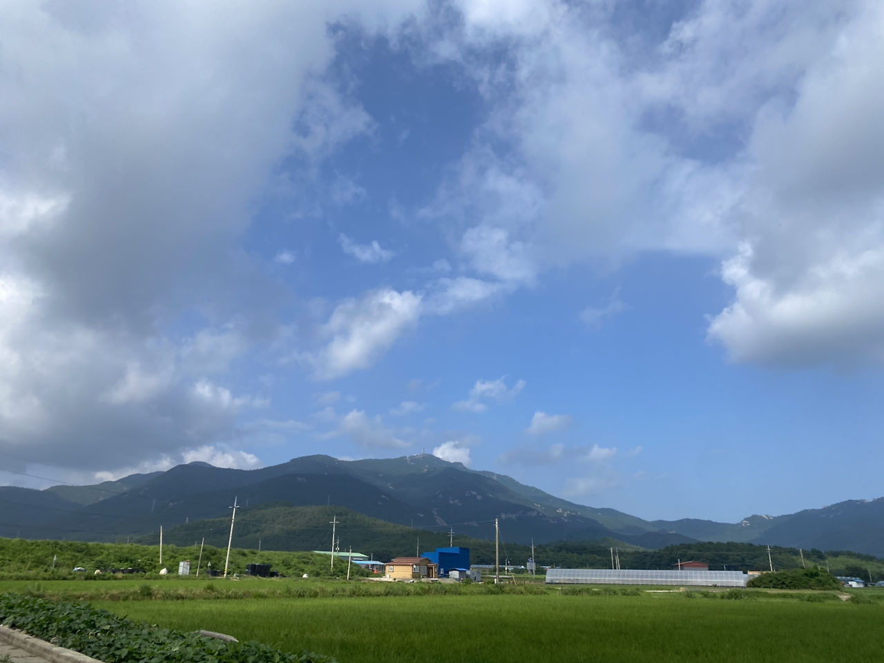 한 가지 너무 좋았던 건 수목원까지 가는 구비구비 국도길의 풍경이 너무도 예뻤다는 것이다. 저먼치에는 두륜산의 능선이 눈앞에는 푸른 논밭이 펼쳐졌다. 차창을 반쯤 열고 바람을 맞으며 시골 내음을 맡아 보았다. 전원의 평화로움이 마음까지 편안하게 해주는 느낌이었다.