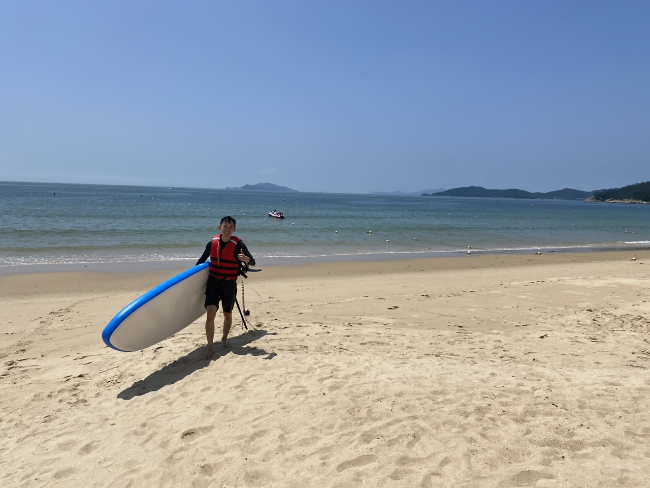 우리 외에 교관으로 봉사활동을 하는 광주 청년 한 분이 있었는데, 그야말로 완도에 여름동안 SUP 인스트럭터로 근무하는 모양이었다. 2달간 완도에 있다가 해병대 입대를 한다고 했다. 이곳에서의 삶이 너무도 지겨워서 빨리 끝났으면 하면서도 막상 끝나버리면 군대에 가는 건 싫은 모양이었다.
