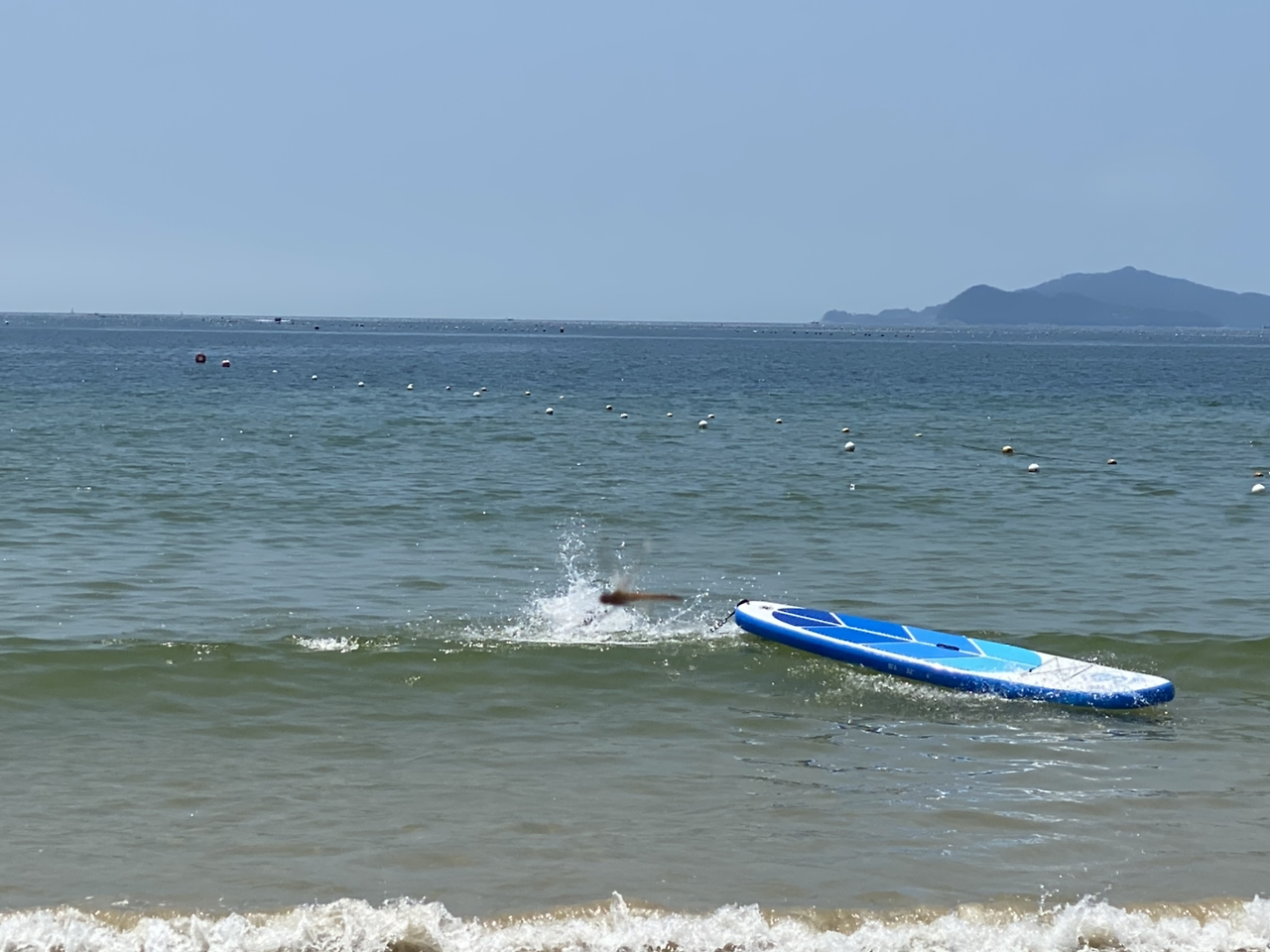 이렇게 막 노 젓고 돌아다니다가 지칠 때면 잠시 보드 위에 누운 뒤에 노의 머리를 햇볕 가리개 삼아 얼굴 위에 올려놓고 눈을 감으면 기분이 참 좋았다. 넘실대는 파도에 몸을 맡기고 들려오는 바다 소리가 참 좋다. 잠시뿐이지만 제대로 휴가를 즐기고 있다는 기분이 든다.