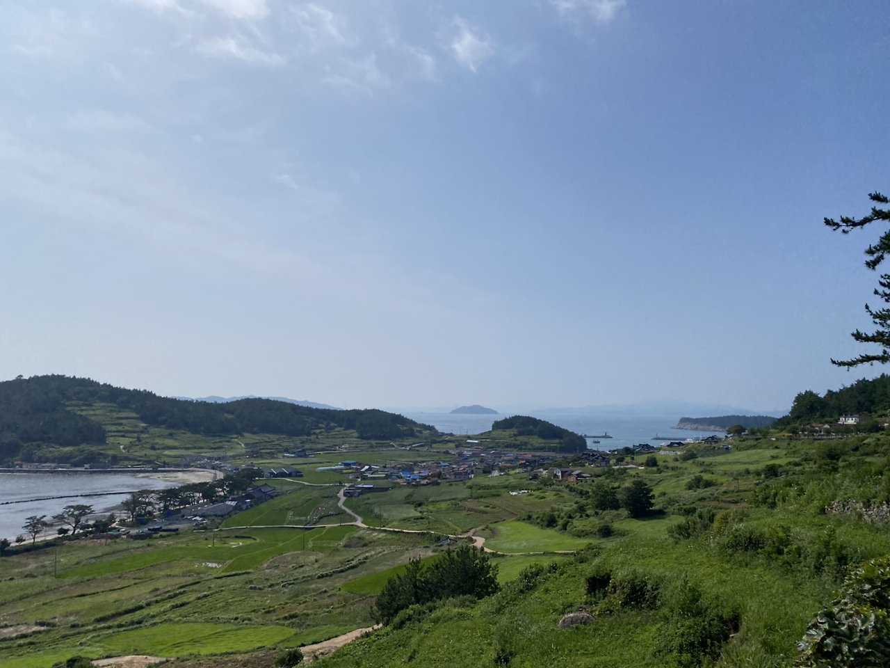 친구가 사진 찍는 재주는 좀 없어서 이런 애매한 구도의 사진이 되고 말았지만 원래는 저 프레임 안에 산, 들, 바다 그리고 핥트가 밸런스 좋게 들어가야 하지 않았을까 싶다.