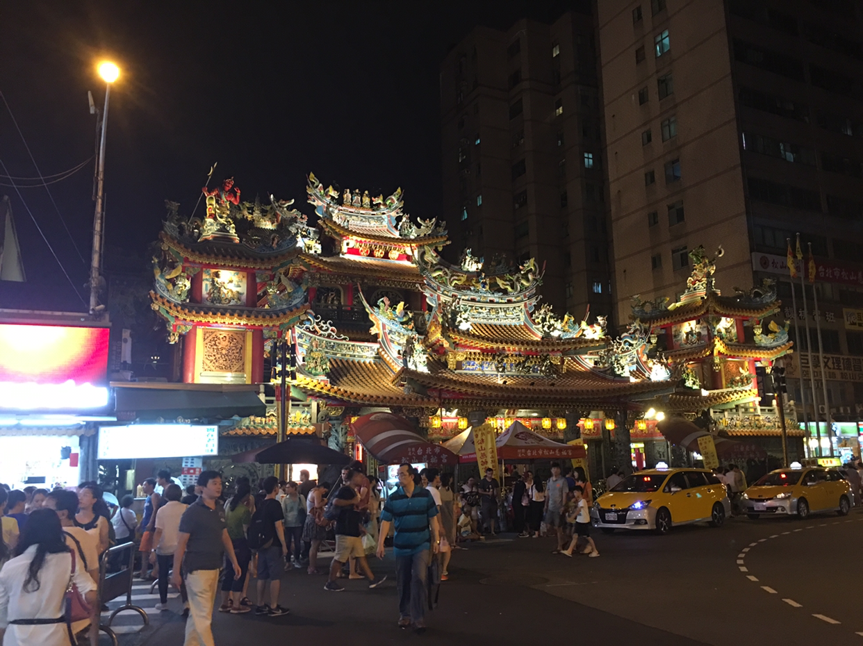 찾는 건 어렵지 않습니다. 아래와 같이 휘황찬란한 사당이 보이는 곳이 바로 라오허 야시장 입구입니다~
