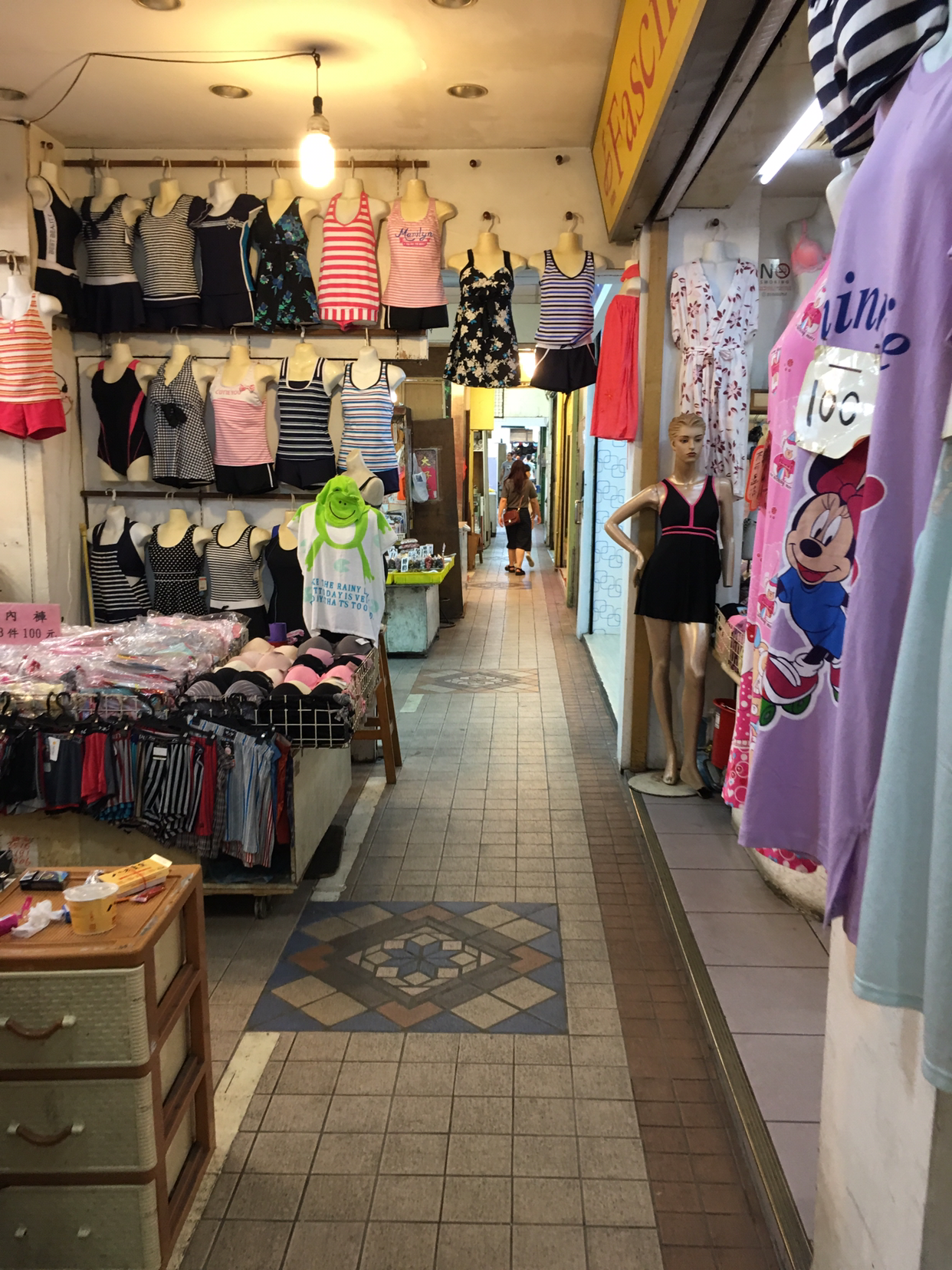 간혹 야시장 거리에 사람이 너무 많아 앞으로 잘 나아가지 않거나 너무 더우면 이렇게 길가 상점 사이로 난 길을 이용하셔도 됩니다. 에어콘 바람이 솔솔 새어나와 시원~! ^^