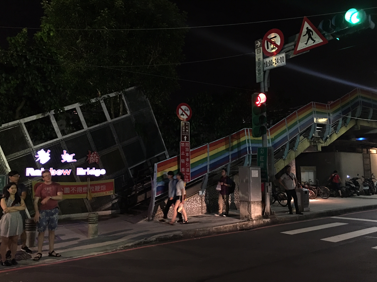 야시장 정문에서 걸어 들어오다가 오른쪽편에 셋길이 있는데 그 골목을 따라 1분 걷다 보면 이 레인보우 브릿지가 보입니다~ 올라가셔서 다리를 건너도 되나 강변 입구로 들어가는 걸 추천!