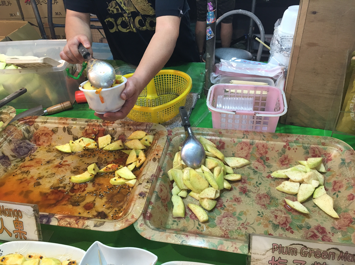 라오허 야시장 정문에서 들어오다가 중간 정도 왼쪽편에 있습니다. 그냥 끝까지 쭉 가셨다가 돌아오는 길에 후식겸 들르시면 됩니다.